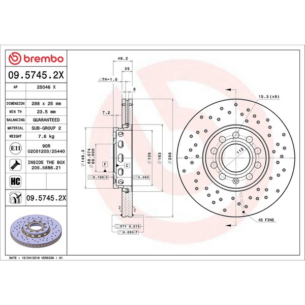 Brembo KT00B03 Brembo ceramic brake pad and UV coated vented drilled brake disc kit