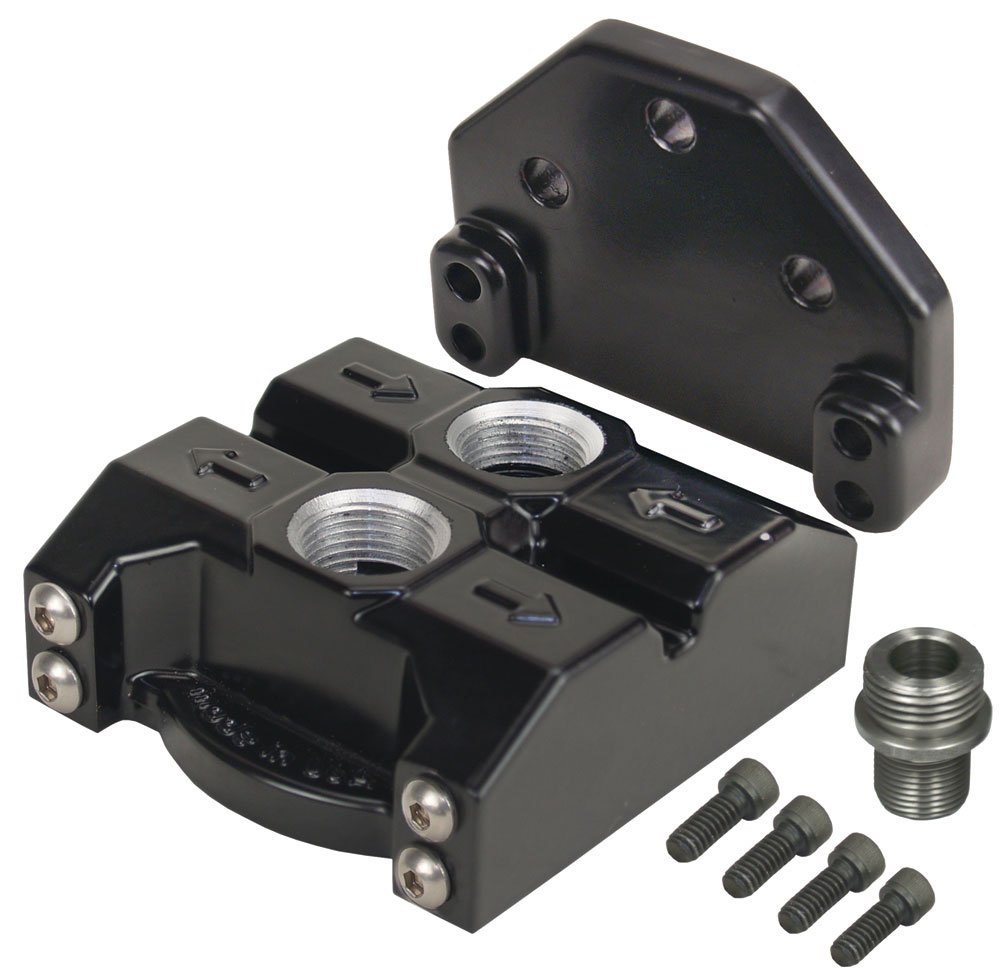 Derale 35708 Premium -10AN Ports Up Single Filter Mount, 3/4″-16 Filter Threads