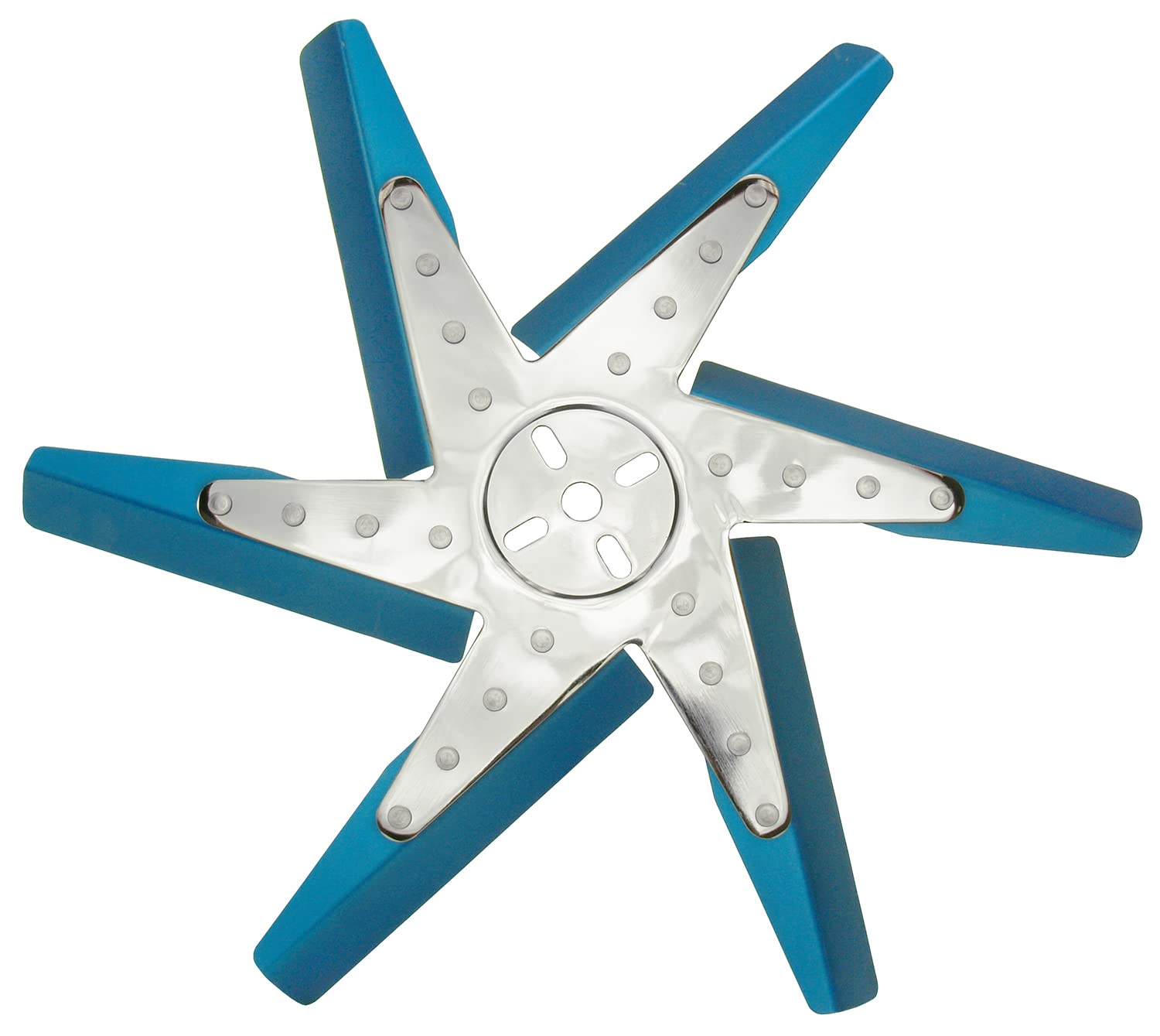 Derale 19518 18″ High Performance Alum Standard Rotation Flex Fan, Blue Blade with Chrome Hub
