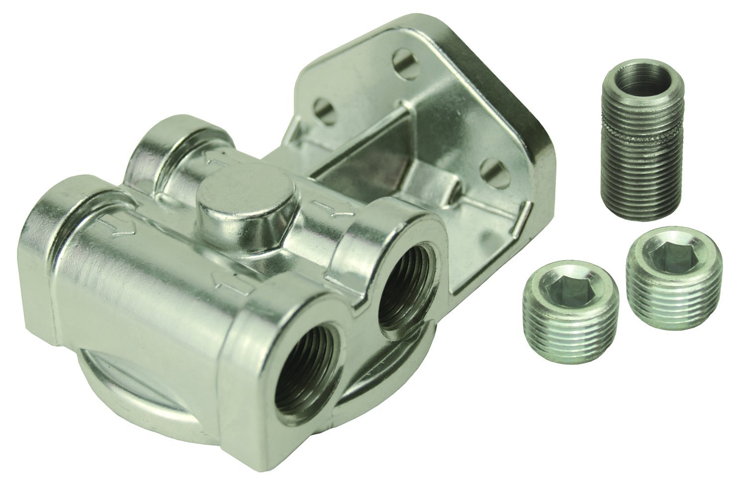 Derale 25049 Single Side Ports 3/8″ NPT Filter Mount with 3/4″-16 Filter Threads