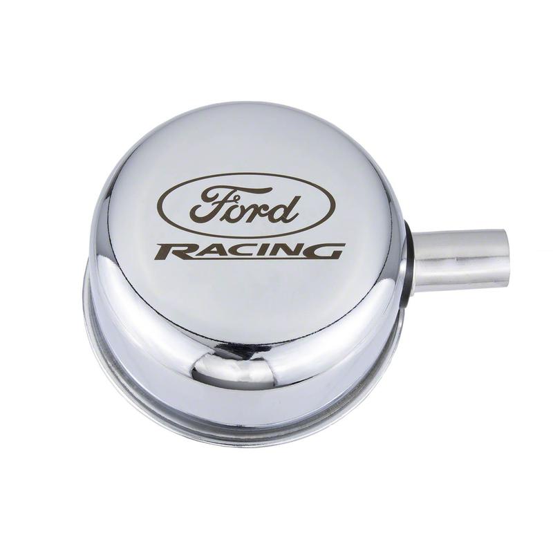 Ford Racing 302-215 Ford Racing Logo Air Breather Cap: Push-In Type Chrome